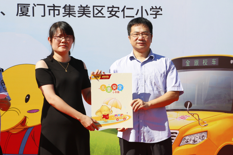 在活动的最后,金旅客车工会主席王立志代表金旅客车向安仁小学赠送了一千份《儿童安全手册》,该手册是金旅特别制作,希望通过漫画的形式,让同学们在生动有趣的阅读中,学习并增强安全意识,加强面对各种危险时的应急能力。