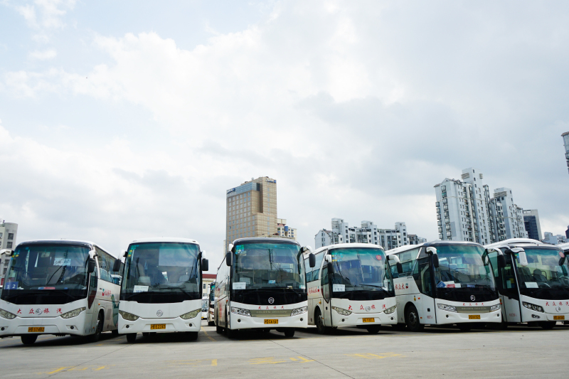 如今,在大众旅汽在线运营的车辆中,金旅车辆有近200辆,占有比例最大,是旅游包车的绝对主力,包括有XML6103、XML6127、XML6113、XML6907等经典车型,以及最近几年新上线的金旅凯歌、金旅锦程等。金旅客车在国内首推的客车整车阴极电泳生产线、首创的全承载式装配工艺等先进技术加持,让金旅客车品质熠熠生辉,赢得了市场用户高度青睐。走进上海大众旅汽公司总部停车场,可以看见近乎清一色的金旅客车品牌,分别服务于罗氏Roche、赛默飞世尔等国内外知名企业班车接送。