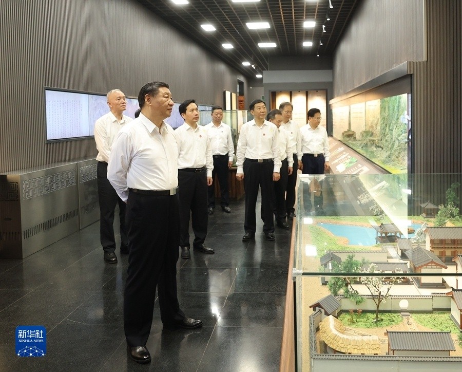 7月29日,中共中央总书记、国家主席、中央军委主席习近平在四川考察结束返京途中,来到陕西省汉中市考察。这是习近平参观汉中市博物馆有关历史文物展陈。新华社记者 鞠鹏 摄