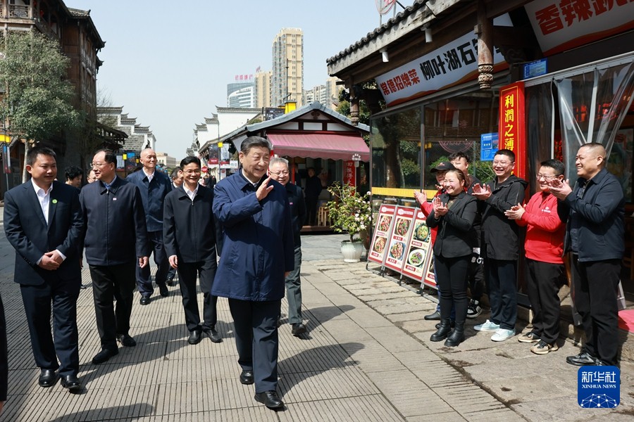 3月18日至21日,中共中央总书记、国家主席、中央军委主席习近平在湖南考察。这是19日上午,习近平在常德河街考察。新华社记者